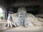 In the years before it was made into Highway 99, Aurora Avenue was an ordinary residential street. Its last segment in Fremont is now underneath the Aurora Bridge. In the year 2005 the City of Seattle passed an ordinance to rename this two-block segment of Aurora between North 34th to 36th Streets “Troll Avenue” to help people find the Troll artwork at the intersection of North 36th Street. This is one of the most recent examples of permanent street renaming in Seattle.