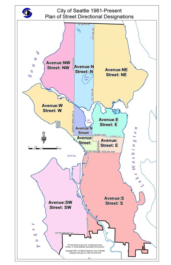 The City of Seattle changed its directional designations in 1961.
