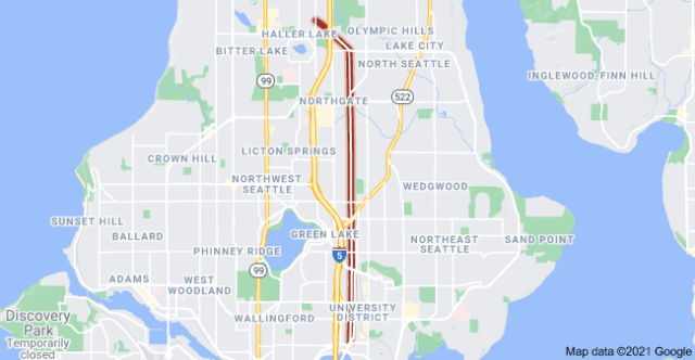 “This street runs nearly six miles from the north end of the University Bridge (at Eastlake Avenue NE and NE Campus Parkway) to Aurora Avenue North, just shy of the Seattle city limits at North 145th Street.