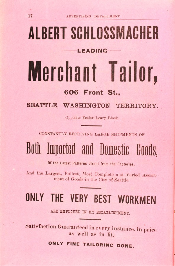 Schlossmacher 1887 full page ad in Puget Sound Directory