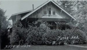 In 1914 Melvin & Mae Yates had built their house at 3004 NE 110th Street on ten acres that they owned from 30th to 31st Avenues NE. They knew that a new highway had just been put through with a turning-point at that corner of 30th Ave NE and NE 110th Street, in order for the road to pass along the sides of the Fischer Farm (present site of Nathan Hale High School).