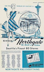 In the 1960s a new name, Northgate, was on the rise in north-central Seattle, north of Green Lake. The Northgate shopping mall opened in 1950 even before the Interstate 5 freeway which now borders it.