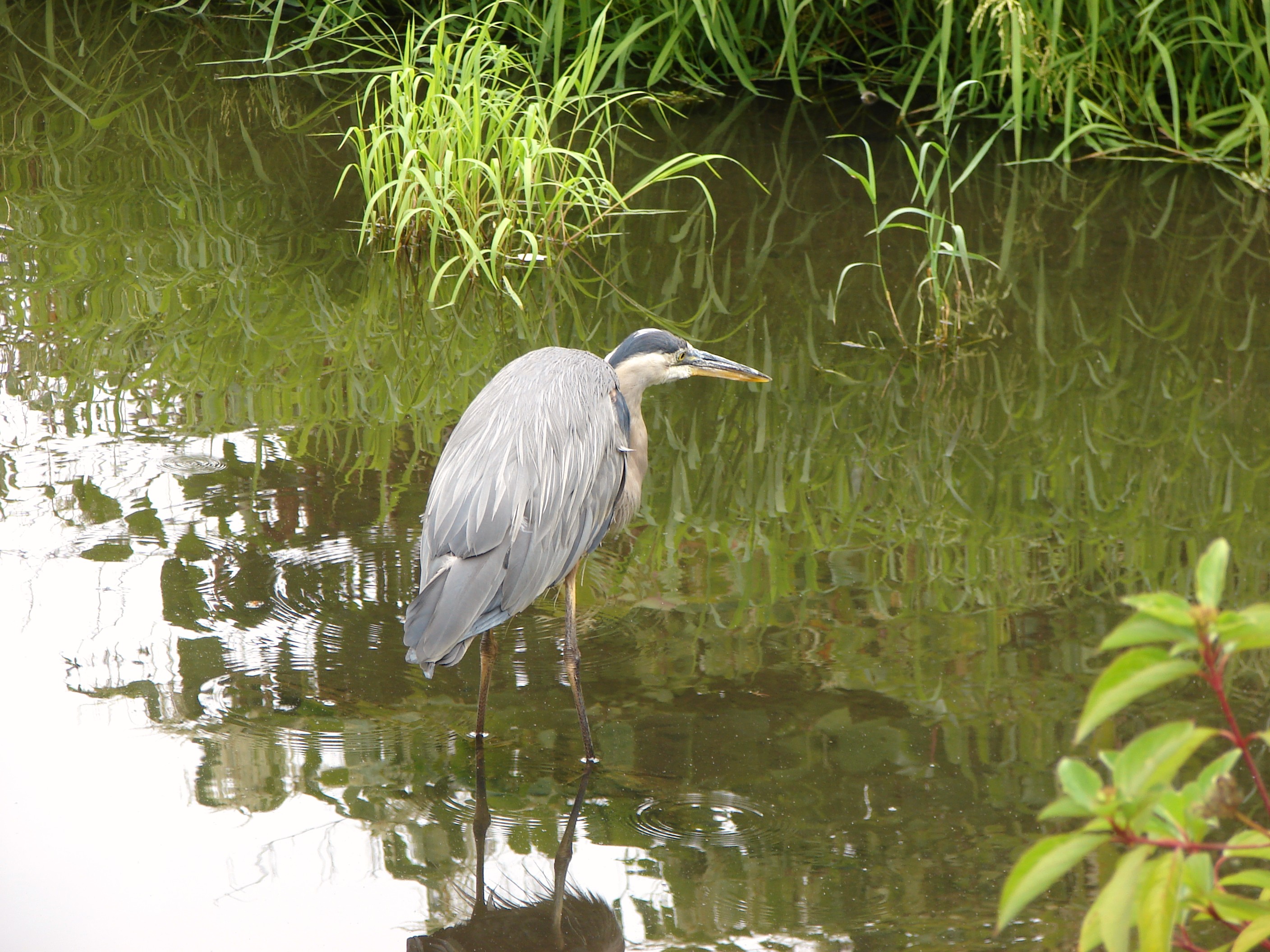 Blue Heron in Meadowbrook Pond. Photo by Valarie.