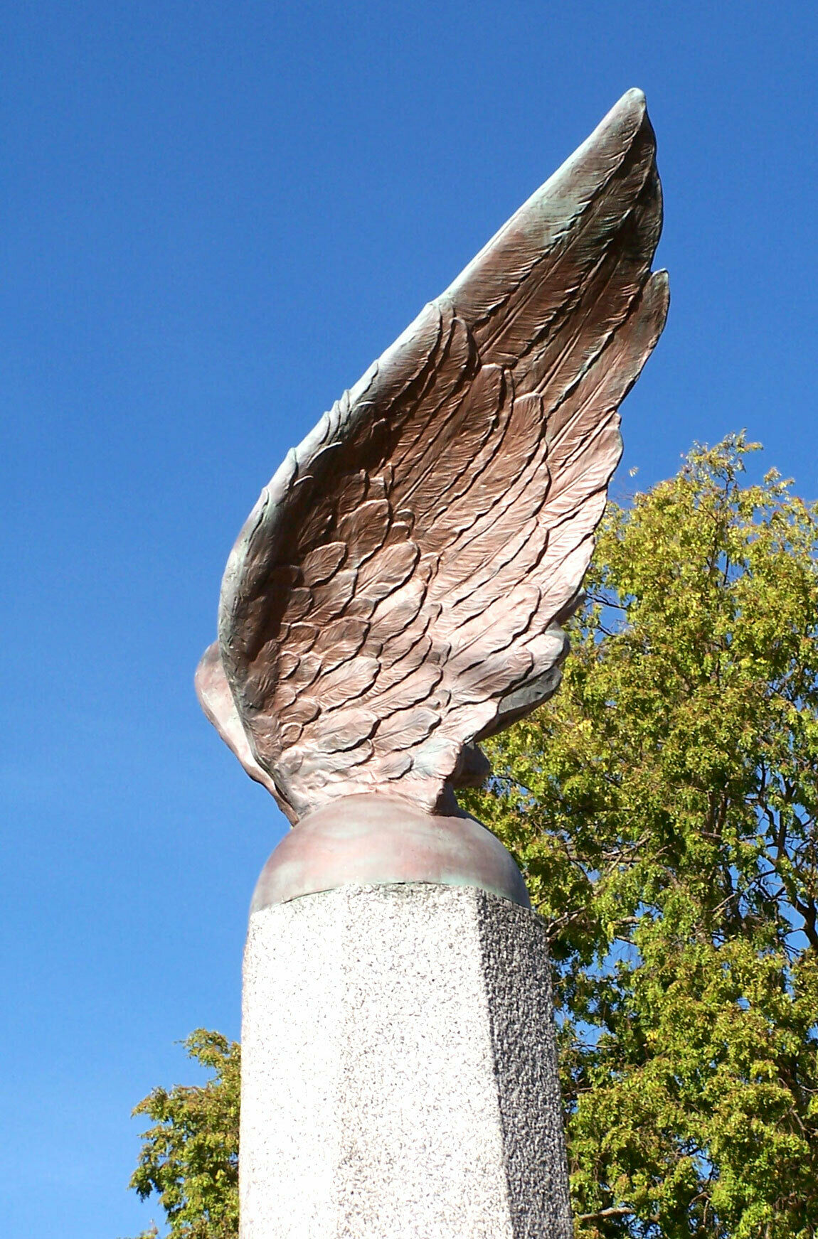 Wing detail of the World Flight Monument at the gate of the NAS.