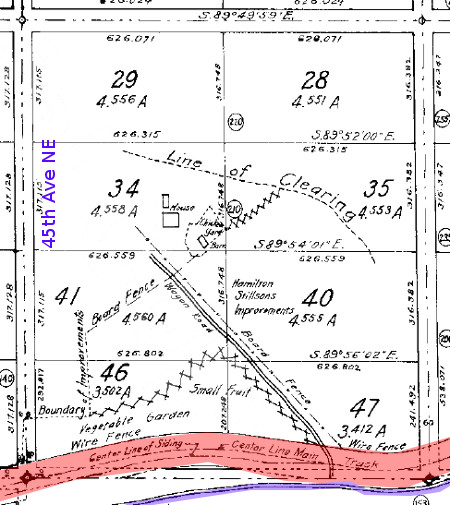 Stillson claim of 1897 detail view.wagon road house and clearing