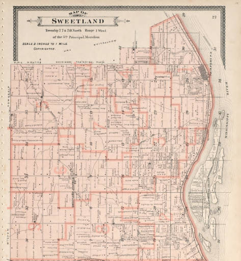 Sweetland Township, Muscatine County, Iowa, with the Mississippi River at right (map of 1899)