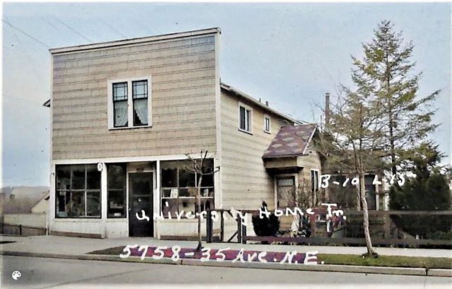 With the growth of the Bryant neighborhood in the 1920s, stores began to be built along 35th Ave NE. The road was as yet unpaved and had not been arterialized with stop signs at cross-streets, but 35th Ave NE was already recognized as the main thoroughfare running north-south.