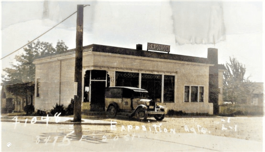 S.A. Gordon sign on top of the store building at 3415 NE 50th Street. Photo from property records of 1938.