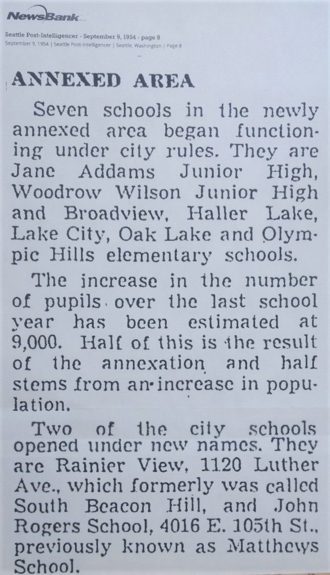 Rogers School news article.Seattle.9 September 1954 Seattle Post-Intelligencer