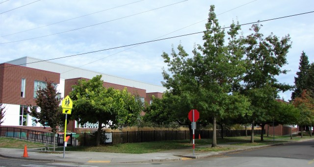 Morning arrival of students is divided with lower grades entering the school building at the corner of NE 77th, and upper grades from the NE 80th Street side.