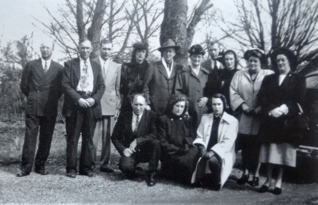 In 1950 most of the Land siblings gathered for the first death among them, brother Howard. The eldest sibling, Lee, born in 1897, is second from left. Dorothy is fourth from left. Maxine (“Cena”) was the youngest; she is third from right.