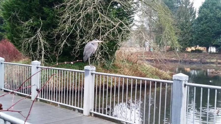 Blue heron at Meadowbrook Pond. The pond teems with aquatic life including fish, birds and beavers.