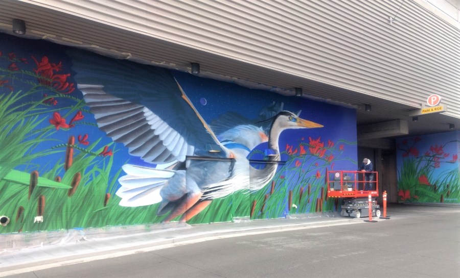 Thornton Place blue heron mural.April 2022