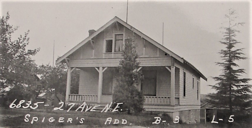 The Spiger family home at 6835 27th Ave NE as photographed in 1937 during a King County survey of properties.
