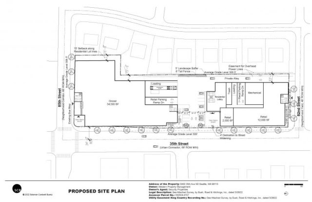 In June 2022 it was announced that the long-time owner of the Wedgwood Shopping Center at the southeast corner of 85th & 35th, is getting ready to sell. A developer, Security Properties, is the interested buyer and has plans to clear the site and build all new buildings. The developer must first go through the City of Seattle Design Review process and then apply for permits.
