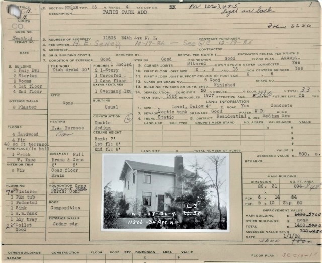 THANK YOU to the present owners of 11506 34th Ave NE who love the house and were willing to share its legacy in this blog article.