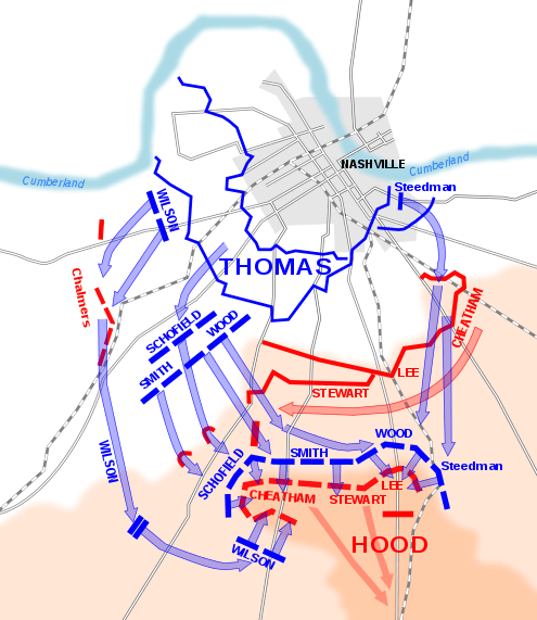General Thomas finally ordered an attack on December 15, 1864. By that time the Confederate troops under General Hood numbered only half as many as the Union troops, due to death, injury and desertion.