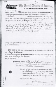 The Union versus Confederate conflict existed within George Boman’s family. In the account of his life given in Seattle newspapers in 1890, Boman said that his father’s dying wish was that the family stay with the Union. If true, this was one of the reasons why George’s family was torn apart by the war. His older brother Robert joined the Confederacy, as did some of George’s cousins. We don’t know exactly why George made the decision when he did, but we know that at the age of twenty he enlisted in the Union Army in October 1864.