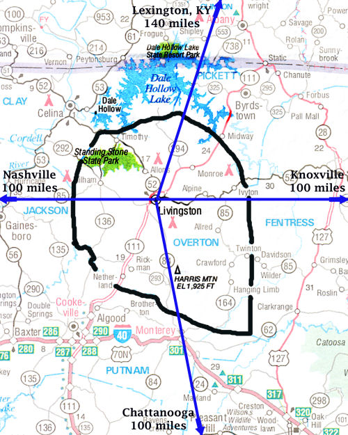 One of the Cumberland Gap migrants was Josiah Boman, born in 1769 in Virginia, who settled in Tennessee in 1810. By the time of the Civil War in the 1860s his descendants lived in Overton County, about ten miles east of the county seat of Livingston, and about one hundred miles east of Nashville. Today generations of Boman descendants still live in Overton County, in and around the Alpine area — with one exception: George Boman, Josiah’s grandson, who left Alpine after the Civil War.