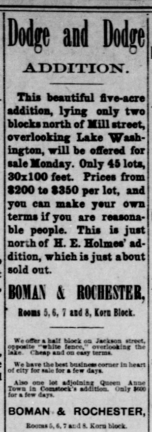 Perhaps, as of 1882, Boman wanted to get ahead of a projected increase in real estate values by moving to the northside-of-Lake-Union area, where he could show house lots to prospective buyers.