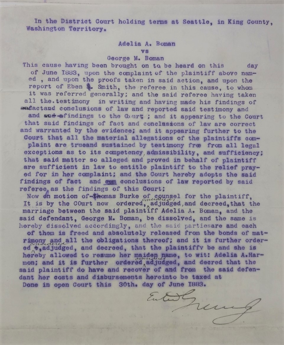 Selleck family moves to Seattle.Seattle PI 1 December 1883