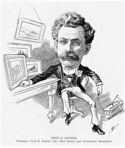 Argus magazine cartoon portrayal of 1906, Fred Sander. In addition to his streetcar investments, Sander was a noted art collector.