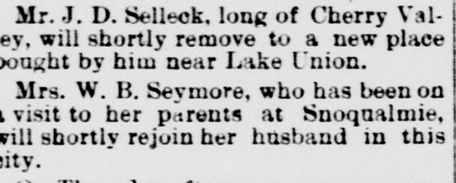 The Seattle Post-Intelligencer newspaper of December 1883 noted the move of the Selleck family to Seattle.