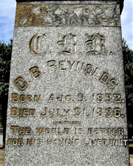 Charles B. Reynolds died in 1896 and was buried in the Boman plot at the cemetery. This inscription is on the other side of the stone obelisk.