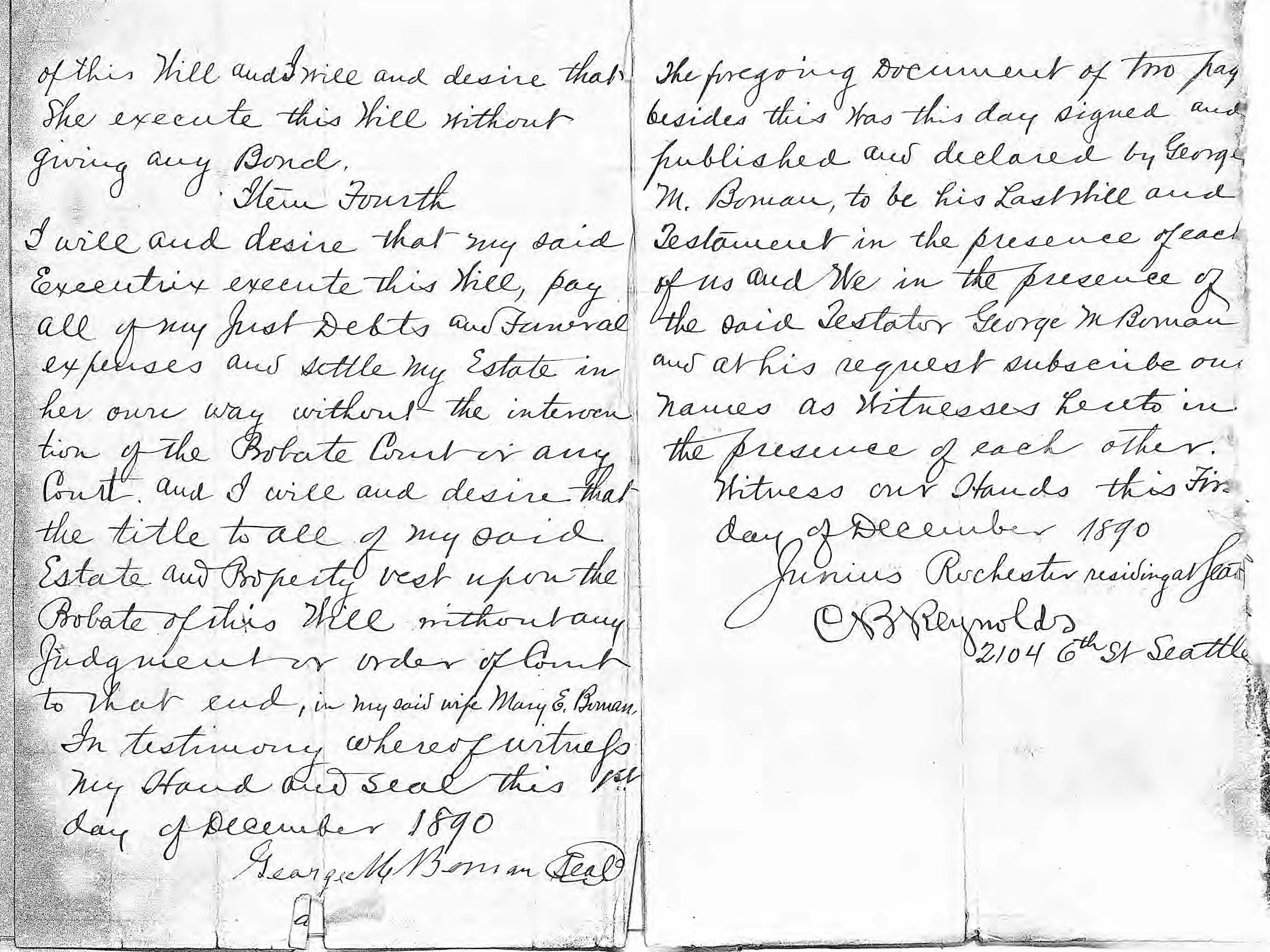 Boman will page two. 1 December 1890 with Rochester and Reynolds witnesses