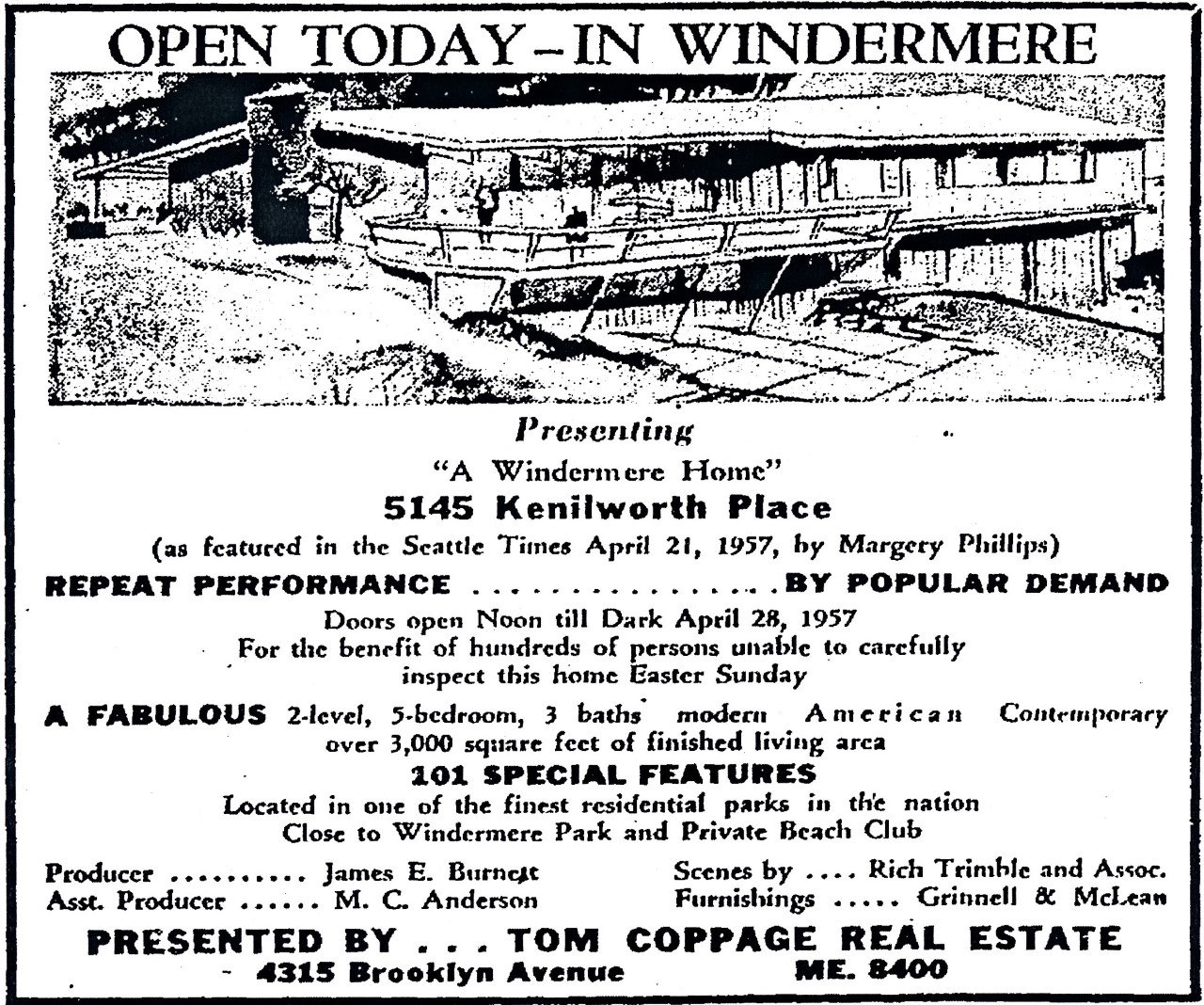 Coppage real estate ad.Seattle Times 28 April 1957 page 37