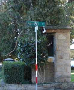 The original Wedgwood development was marked with gateposts at the NE 81st Street entrance. Photo by Valarie.