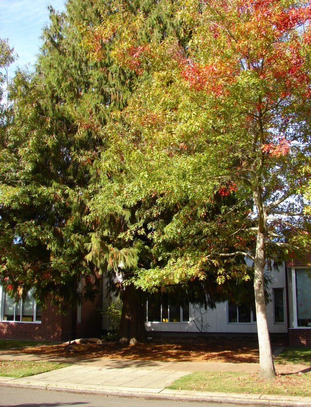 Western Red Cedar and street trees alongside Thornton Creek School on NE 77th Street. Photo by Valarie, October 2023.