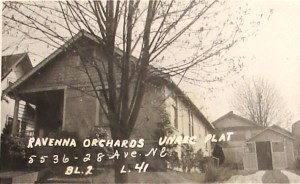 Very few people lived in northeast Seattle in the years before 1912 and yet a little community was developing just north of NE 55th Street, in plats that had been filed called University View and Ravenna Orchard.