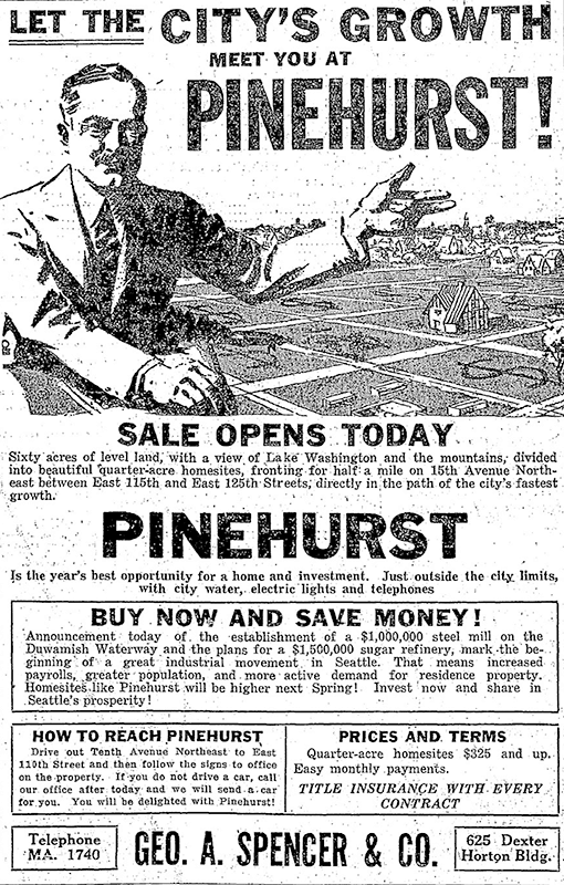 Pinehurst’s first advertisement in the Seattle Times newspaper, October 3, 1926.