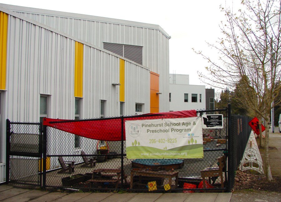 Separate entrance to the preschool at the Hazel Wolf-Pinehurst building.