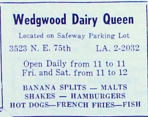 The Dairy Queen on the Safeway parking lot ran this advertisement in 1961 in the Terrace View Community Club newsletters.