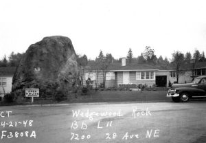 This property card from the tax assessors office is meant to show the house at 7200 28th Ave NE, but of course we are more impressed with the view of the Rock in 1948. Photo courtesy of the Puget Sound Regional Archives, repository of the property records of King County.