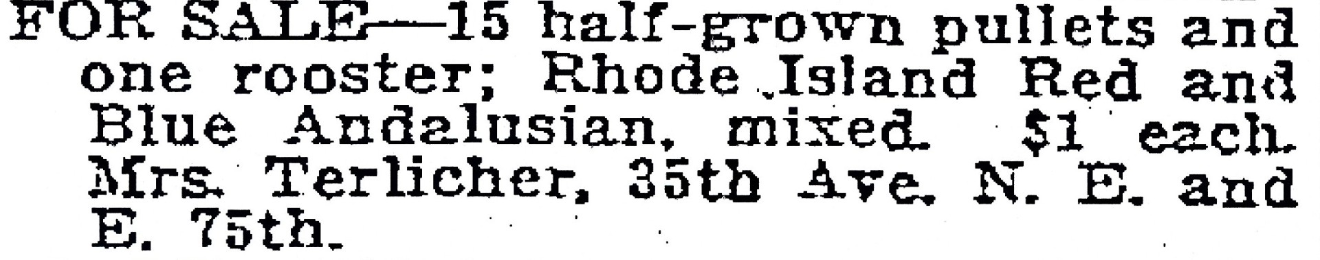 Chickens for sale — Seattle Daily Times, February 22, 1920, page 80.