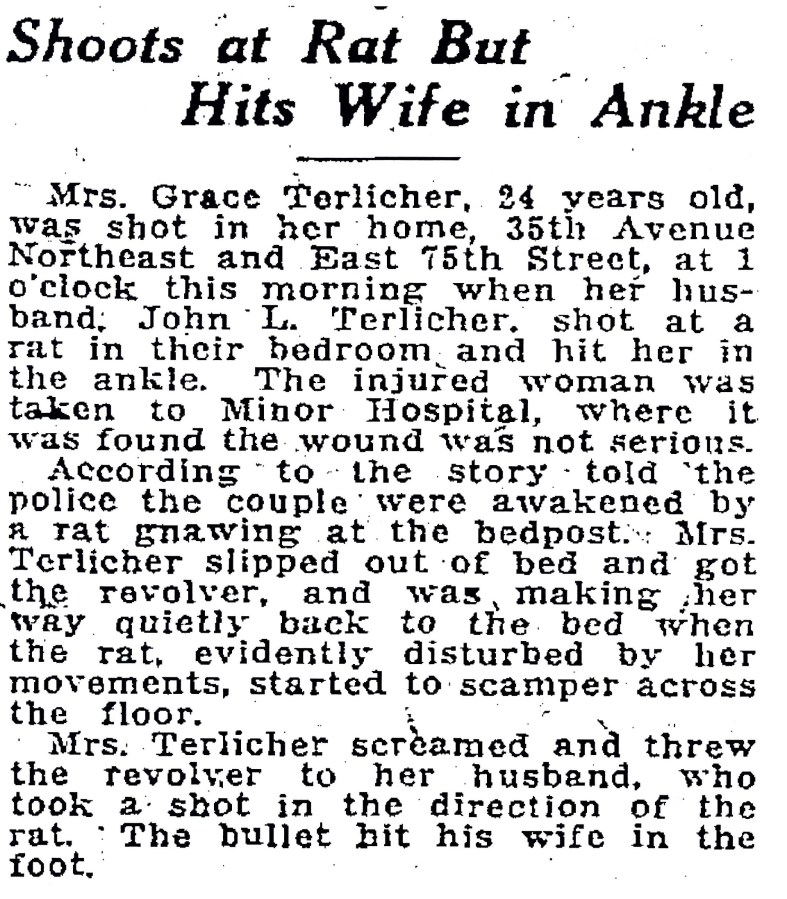Terlicher shoots at rat.Seattle Daily Times 8 July 1921 page 7