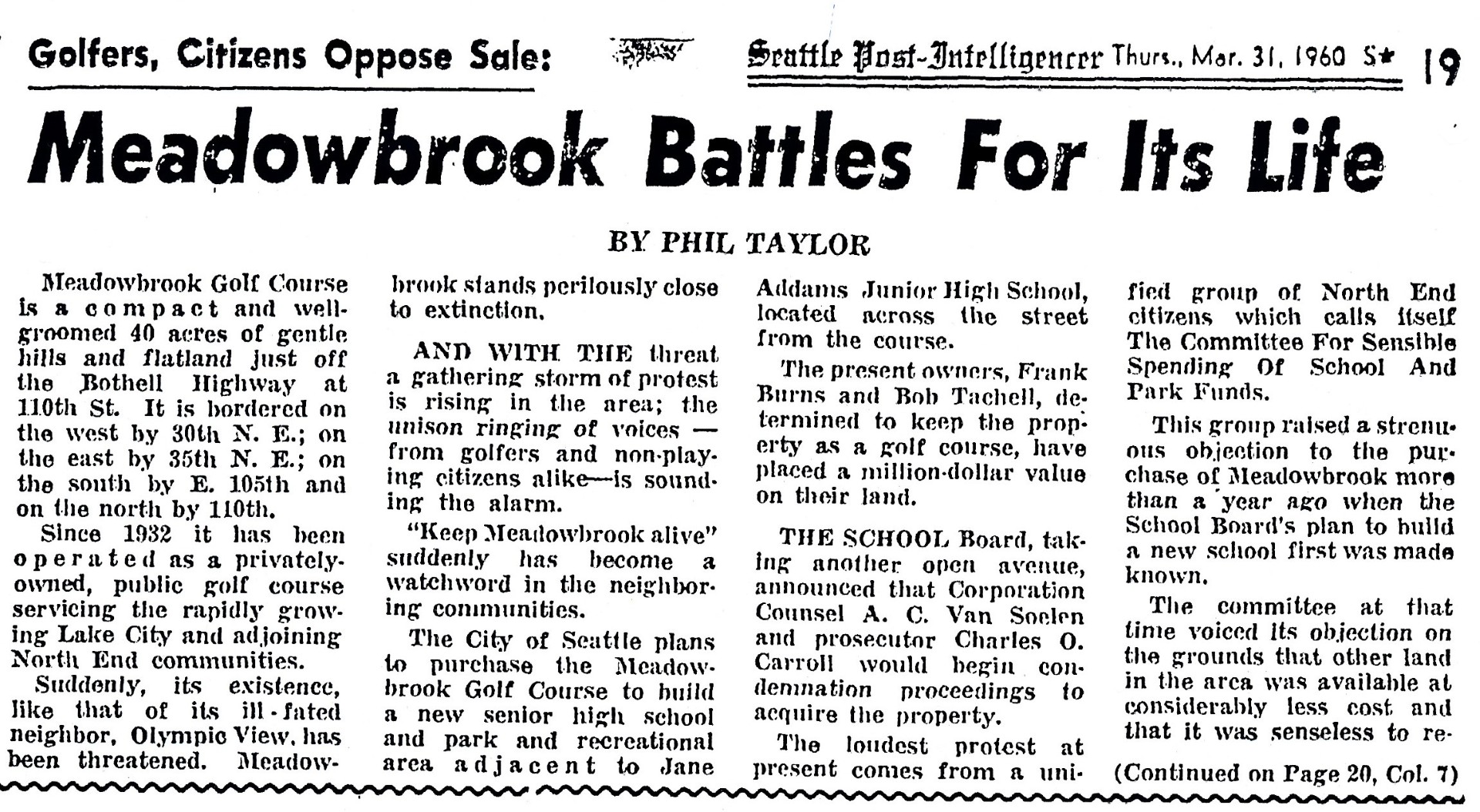 Golf Course sale opposition.31 March 1960 Seattle Post Intelligencer page 18