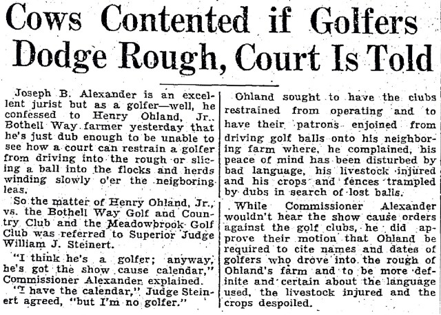 “Ohland Complains That Golfers Have Been Climbing Over His Fence in a Search for Golf Balls,” September 21, 1943, Seattle Daily Times, page 16.