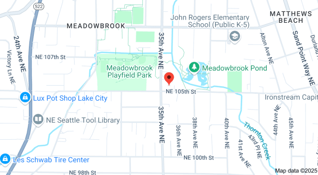 Meadowbrook is defined as the area from NE 95th Street out to NE 125th Street so that Meadowbrook is between Wedgwood and Lake City. Schools in Meadowbrook include Nathan Hale High School, Jane Addams Middle School and John Rogers Elementary.