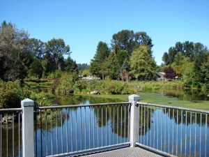 Much of the Ohland’s former pasture is now the flood plain/water detention area of Meadowbrook Pond. This convergence point of the north and south branches of Thornton Creek is called The Confluence. Work began here in the 1990s to slow the flow of water, filter it and prevent neighborhood flooding. Final improvements were done in 2014-2015 to enlarge the flood plain on what was once the Ohland’s pasture. In the photo below, we are looking westward to Nathan Hale High School over on the other side of 35th Ave NE.