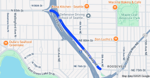 At that same time in the 1950s & 1960s, Ray’s life was about to be affected by another big change: the coming of the Interstate 5 freeway construction which sliced north-south through the middle of Seattle. The Ray Hofeditz house on 4th Ave NE had been on a quiet street, on a ridge with a view of Green Lake to the west. As freeway construction crept nearer in the 1960s, neighbors in the 7700 block of 4th Ave NE were notified that their houses would have to be removed.