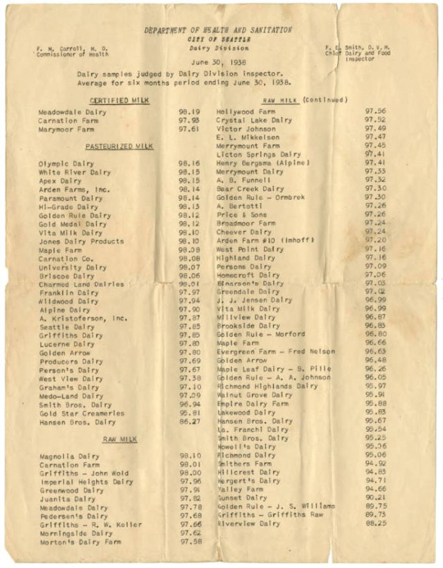 Museum of History & Industry (MOHAI) Dairy List of June 1938, Item #19903.