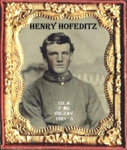 Henry Hofeditz was a teenage immigrant from Germany to the USA in 1857. By the time of the outbreak of the American Civil War in 1861, Henry was old enough to enlist in a Missouri & Illinois cavalry unit to fight for the Union.