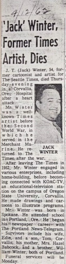 7756 30th Ave NE.designer Jack Winter death notice of 1962