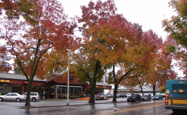The center of the Wedgwood business district is at the intersection of NE 85th Street where there is a now-closed QFC grocery store. The other businesses are still open, including the Wedgwood Broiler restaurant, a coffee shop and a bank. This entire complex is to be demolished for redevelopment in approximately the year 2026. Photo by Valarie.