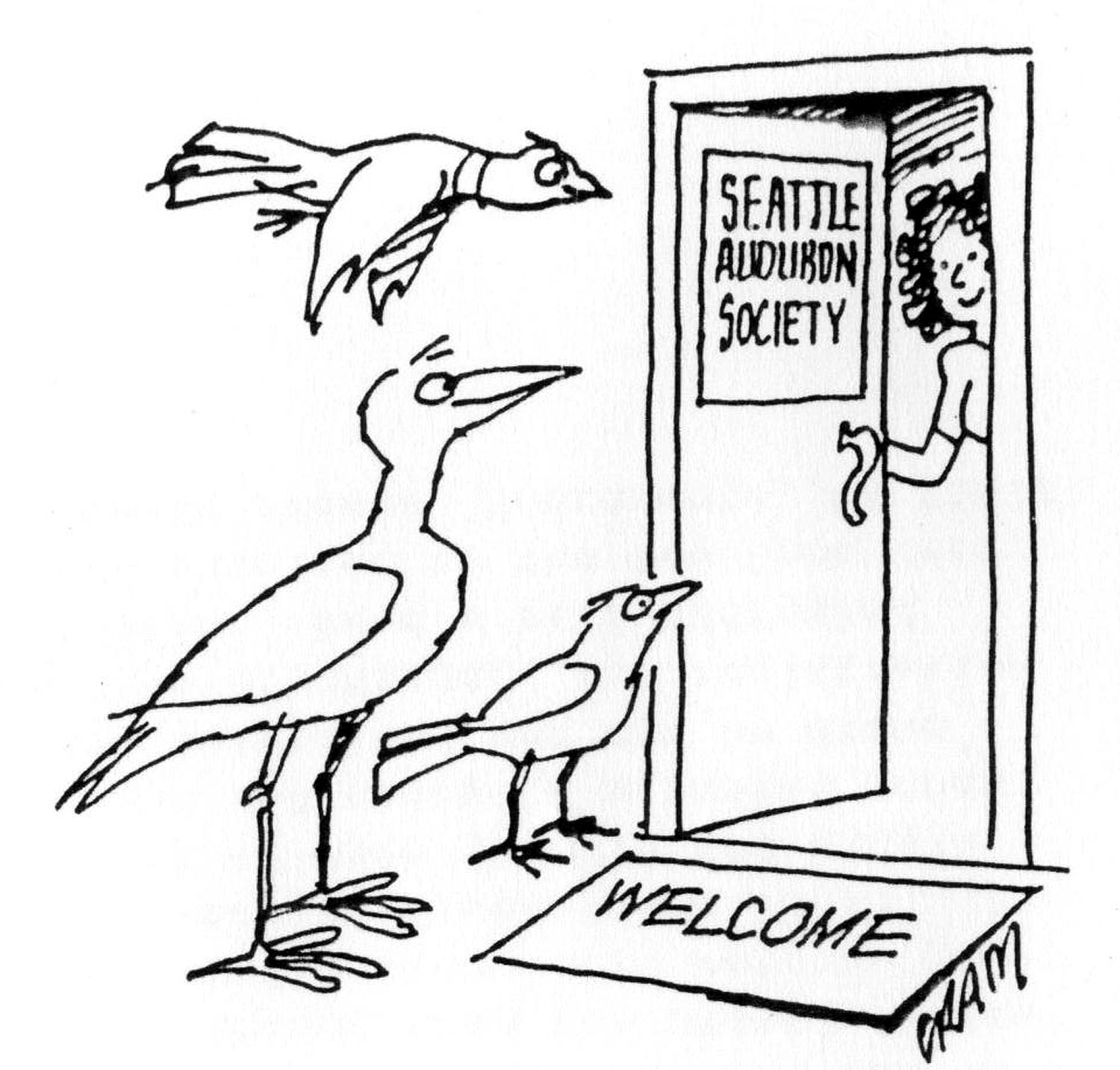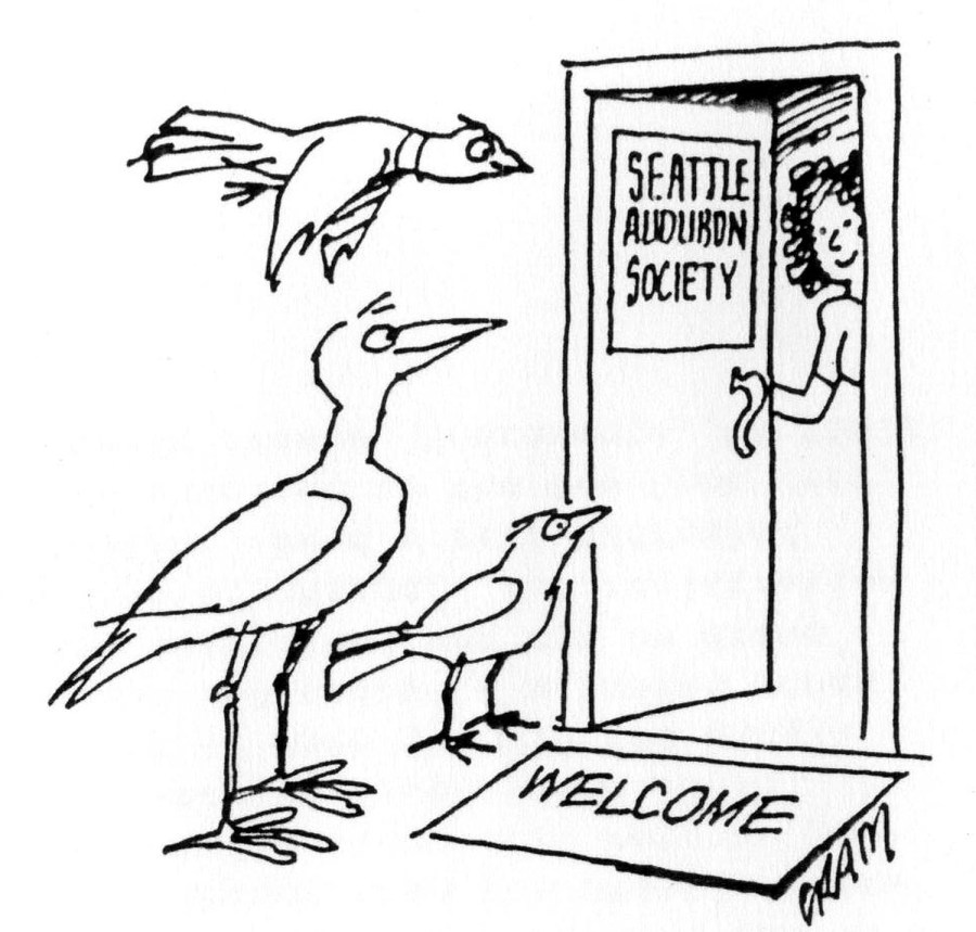Audubon cartoon by Bob Cram in May 1990 WCC newsletter