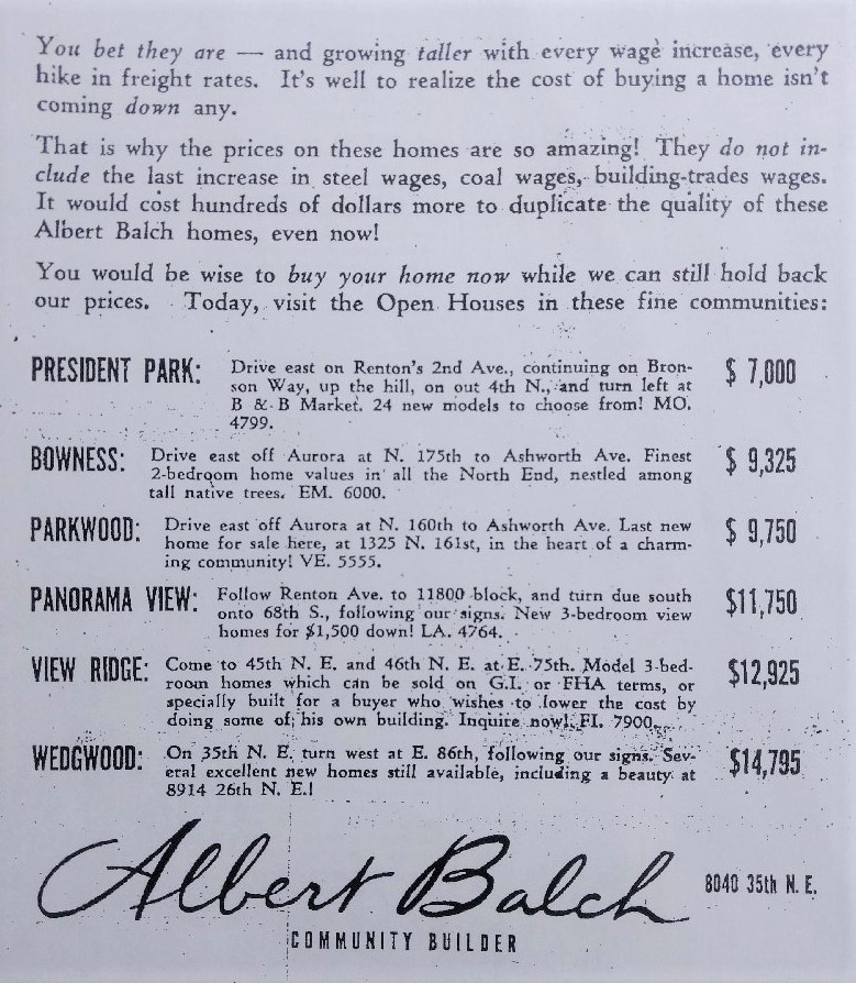 Balch developments ad in the Seattle Times newspaper.25 January 1953 page 21